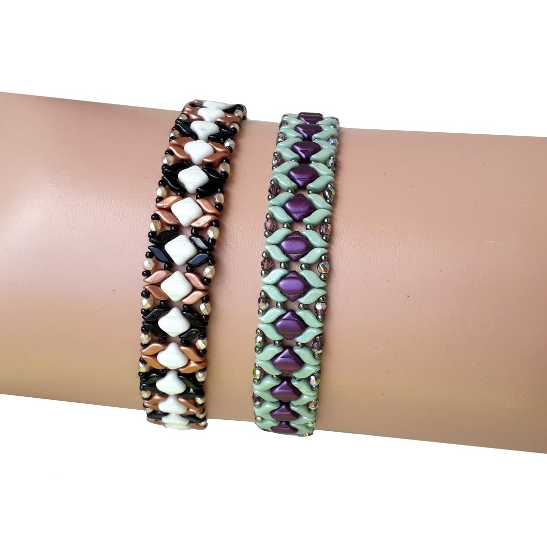 Create a stunning beadwork bracelet with this DIY beading pattern, featuring Czech StormDuo beads, Silky beads, fire-polished crystals, and seed beads for an elegant and intricate design. This PDF tutorial includes step-by-step instructions and detailed visuals, making it easy to follow along, whether you're a beginner or an experienced beader. Master the art of bead weaving and craft a unique, handmade beaded jewelry piece to wear or gift. Download the pattern today and start your next beading project!