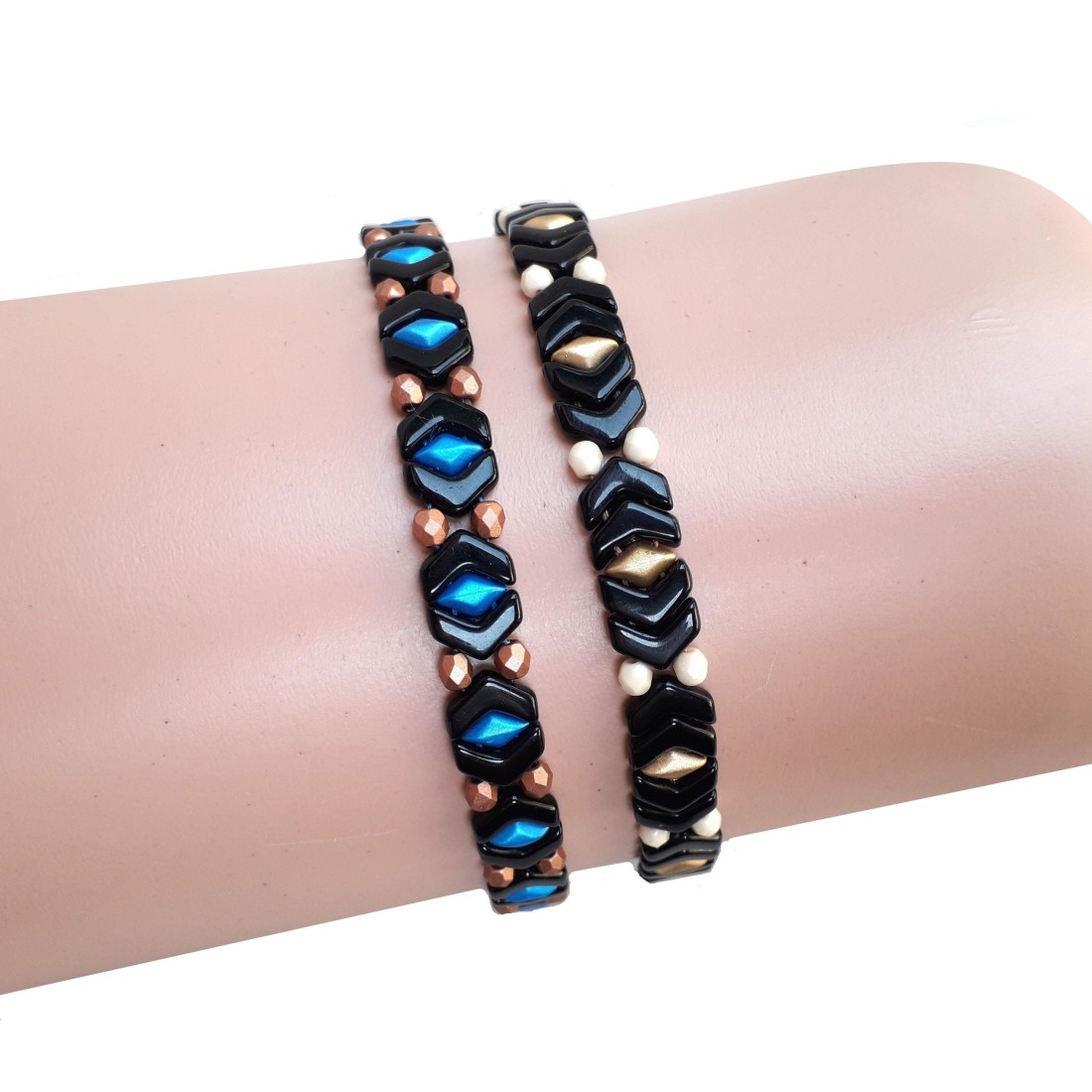 Unlock your creativity with DIY Beading Patterns for Bracelets! This PDF tutorial features step-by-step instructions for creating two elegant narrow bracelets using Czech Chevron Duo beads, seed beads, and fire-polished crystals. Each beadwork design can be easily expanded to make a wider bracelet, allowing for endless customization. Whether you're a beginner or an experienced beader, this bead weaving tutorial provides detailed guidance to help you craft stunning handmade jewelry. Download the PDF instructions today and start your next beading project!